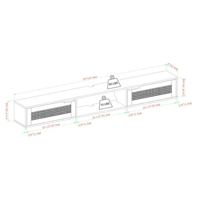 Saracina Home’s Modern Boho Floating TV Stand with Rattan Doors for TVs up to 80″ weaves effortless style into your living room. This minimalist floating media console securely mounts to your wall with included hardware, taking movie nights to new heights. The TV stand’s width is proportionally designed to accompany a hanging TV up to 80 inches, while the top surface is just the right depth for a soundbar or novels. Open and closed storage combined with cable management ports facilitate a neat setup for your electronics, games, and movies.