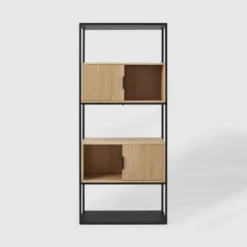 75″ Modern Reeded Door Storage Bookshelf Coastal Oak/Black – Saracina Home